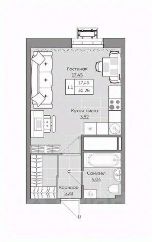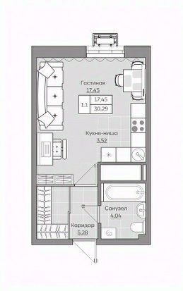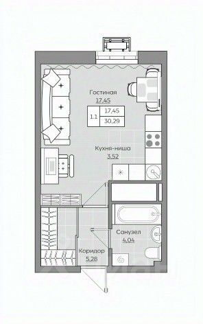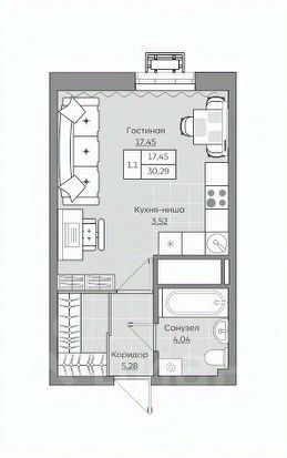 Видовая квартира, площадью, как однокомнатная 30,3 м²