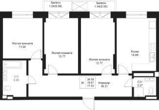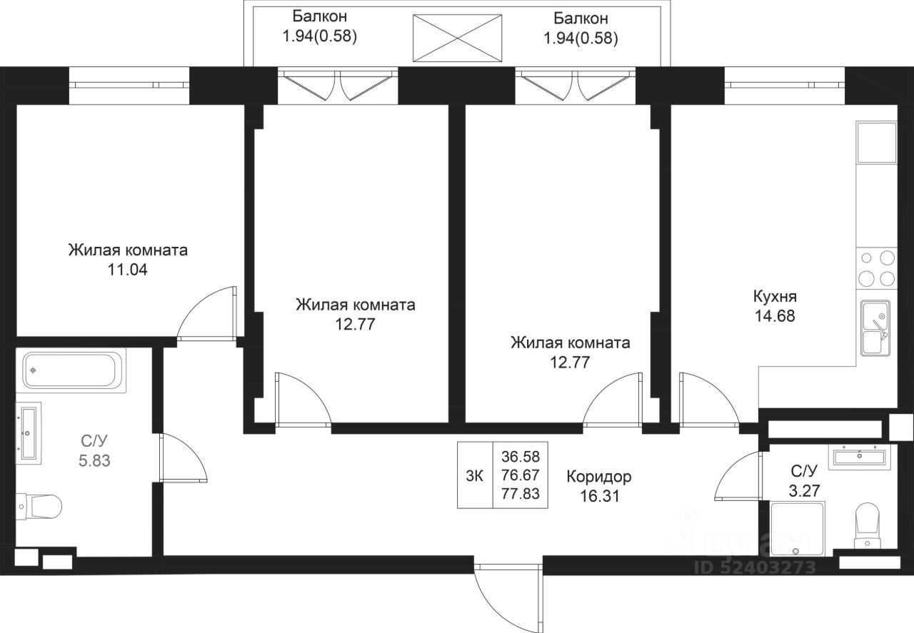 Продается 3-комнатная квартира 21 площадью 77,83 кв.м на 4 этаже проекта "Дом на Исхаки" от "Ак Барс Дом". Купить квартиру можно в ипотеку со ставкой от 4,5%.