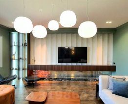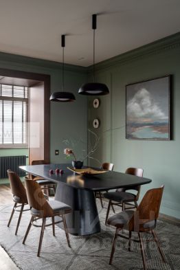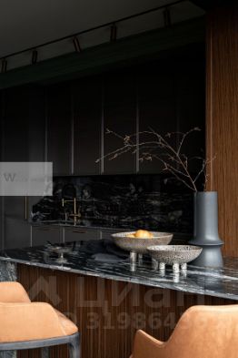 От знаменитых стульев Радомира Хофмана, украшающих столовую, до тщательно отреставрированных винтажных кресел, расположенных в гостиной, каждый элемент этого интерьера рассказывает историю уникального мастерства и элегантности одновременно. Каминная полка изготовлена из натурального черного гранита Marquina, который также используется в рабочих зонах кухни.