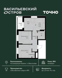 ЖК "Васильевский остров" — масштабный проект ТОЧНО в Казанской агломерации. Просторная территория 88 Га спроектирована для комфортной жизни: озеро с набережной и пляжем, каток, зелёные маршруты. В проекте комплекса — школа на 1 224 места, 2 детских сада на 680 мест, детская и взрослая поликлиники, фитнес-центр с бассейном, термальный комплекс, фермерский рынок, магазины, кафе и рестораны.