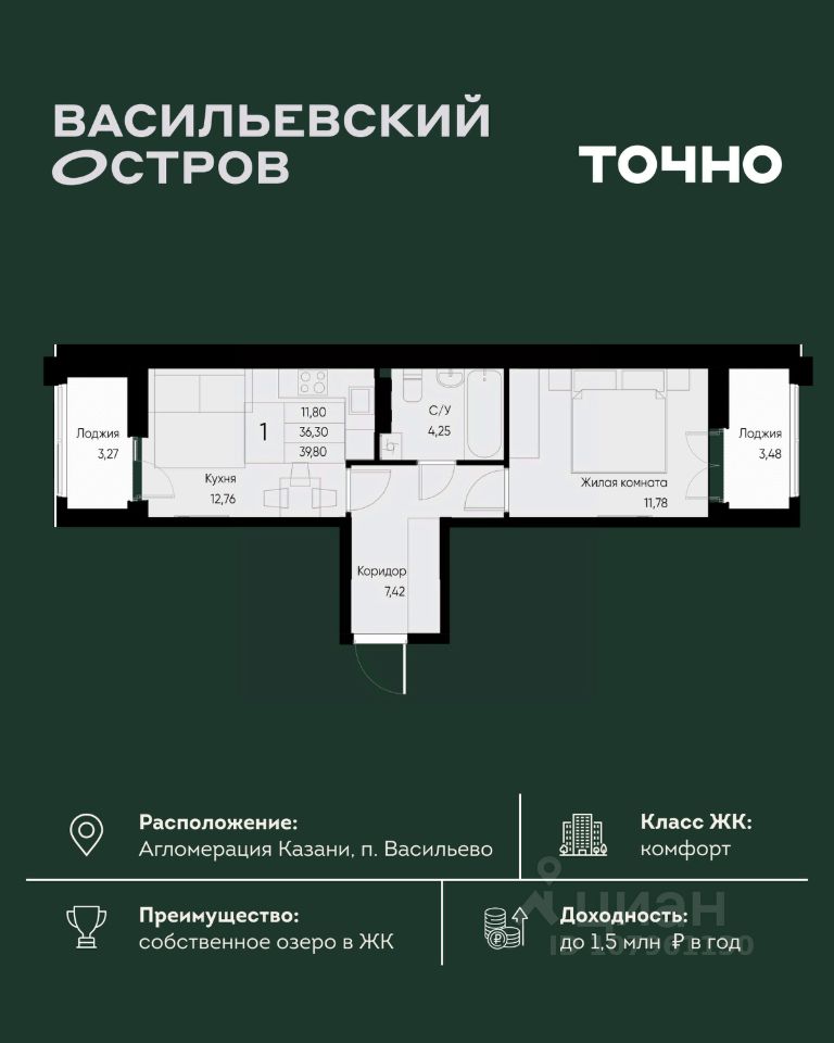 ЖК "Васильевский остров" — масштабный проект ТОЧНО в Казанской агломерации. Просторная территория 88 Га спроектирована для комфортной жизни: озеро с набережной и пляжем, каток, зелёные маршруты. В проекте комплекса — школа на 1 224 места, 2 детских сада на 680 мест, детская и взрослая поликлиники, фитнес-центр с бассейном, термальный комплекс, фермерский рынок, магазины, кафе и рестораны.