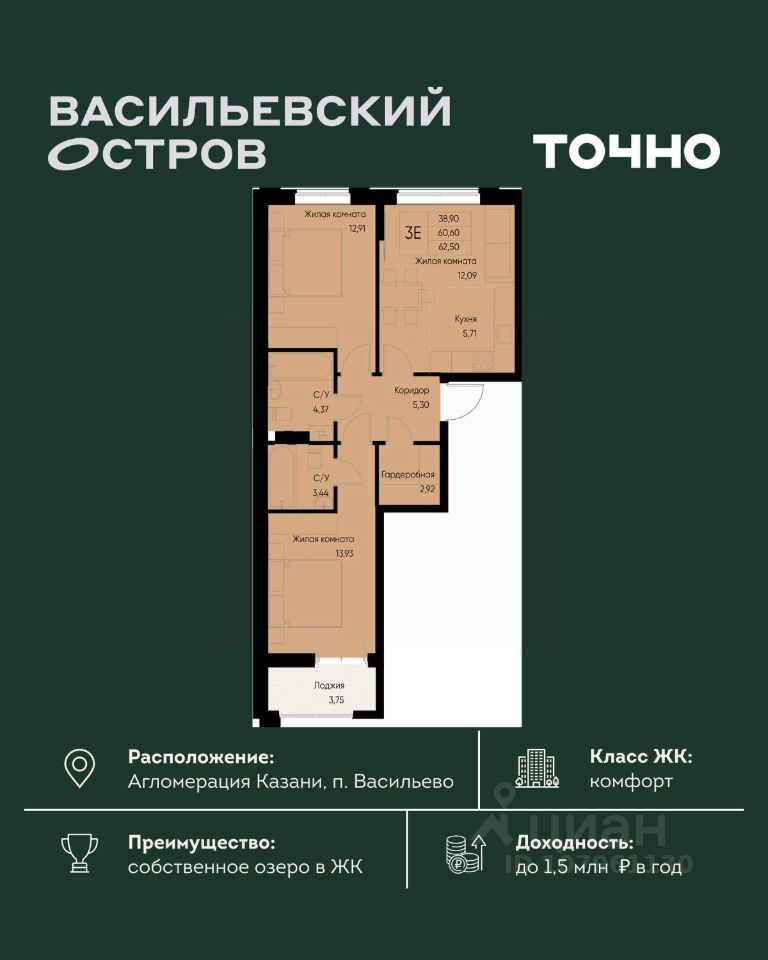 ЖК "Васильевский остров" — масштабный проект ТОЧНО в Казанской агломерации. Просторная территория 88 Га спроектирована для комфортной жизни: озеро с набережной и пляжем, каток, зелёные маршруты. В проекте комплекса — школа на 1 224 места, 2 детских сада на 680 мест, детская и взрослая поликлиники, фитнес-центр с бассейном, термальный комплекс, фермерский рынок, магазины, кафе и рестораны.