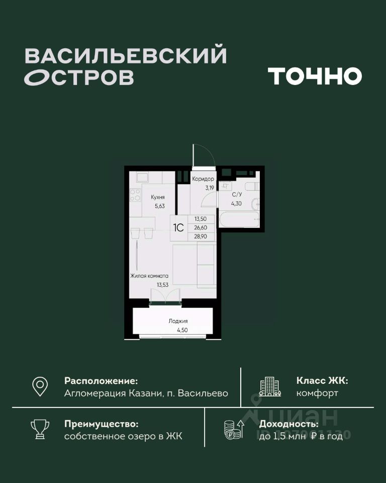 ЖК "Васильевский остров" — масштабный проект ТОЧНО в Казанской агломерации. Просторная территория 88 Га спроектирована для комфортной жизни: озеро с набережной и пляжем, каток, зелёные маршруты. В проекте комплекса — школа на 1 224 места, 2 детских сада на 680 мест, детская и взрослая поликлиники, фитнес-центр с бассейном, термальный комплекс, фермерский рынок, магазины, кафе и рестораны.