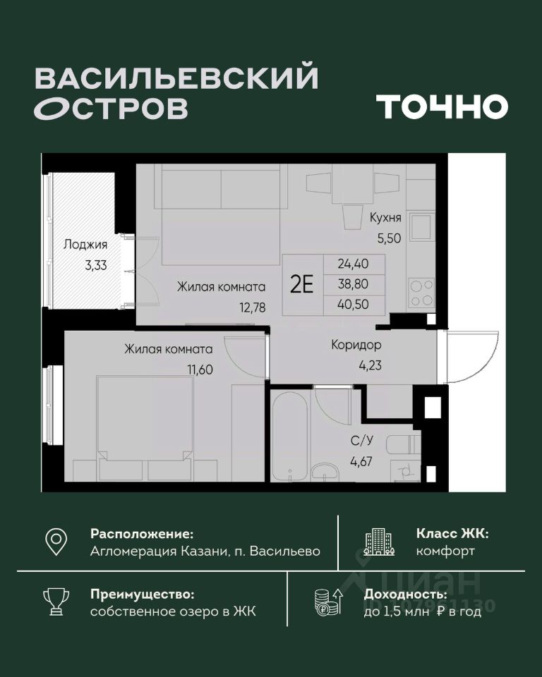 ЖК "Васильевский остров" — масштабный проект ТОЧНО в Казанской агломерации. Просторная территория 88 Га спроектирована для комфортной жизни: озеро с набережной и пляжем, каток, зелёные маршруты. В проекте комплекса — школа на 1 224 места, 2 детских сада на 680 мест, детская и взрослая поликлиники, фитнес-центр с бассейном, термальный комплекс, фермерский рынок, магазины, кафе и рестораны.