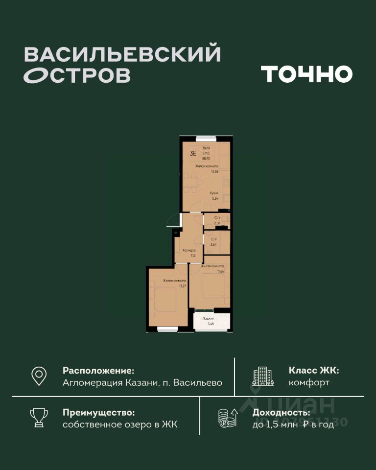 ЖК "Васильевский остров" — масштабный проект ТОЧНО в Казанской агломерации. Просторная территория 88 Га спроектирована для комфортной жизни: озеро с набережной и пляжем, каток, зелёные маршруты. В проекте комплекса — школа на 1 224 места, 2 детских сада на 680 мест, детская и взрослая поликлиники, фитнес-центр с бассейном, термальный комплекс, фермерский рынок, магазины, кафе и рестораны.