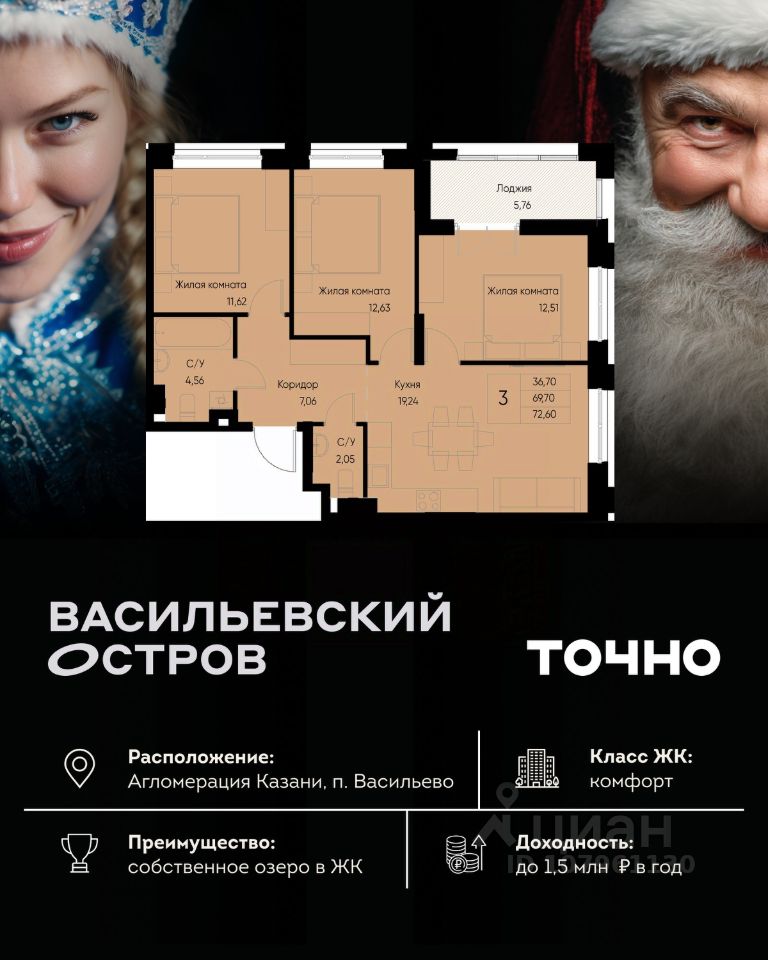 ЖК "Васильевский остров" — масштабный проект ТОЧНО в Казанской агломерации. Просторная территория 88 Га спроектирована для комфортной жизни: озеро с набережной и пляжем, каток, зелёные маршруты. В проекте комплекса — школа на 1 224 места, 2 детских сада на 680 мест, детская и взрослая поликлиники, фитнес-центр с бассейном, термальный комплекс, фермерский рынок, магазины, кафе и рестораны.