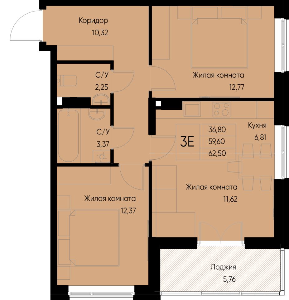 Общая площадь62,4 м²