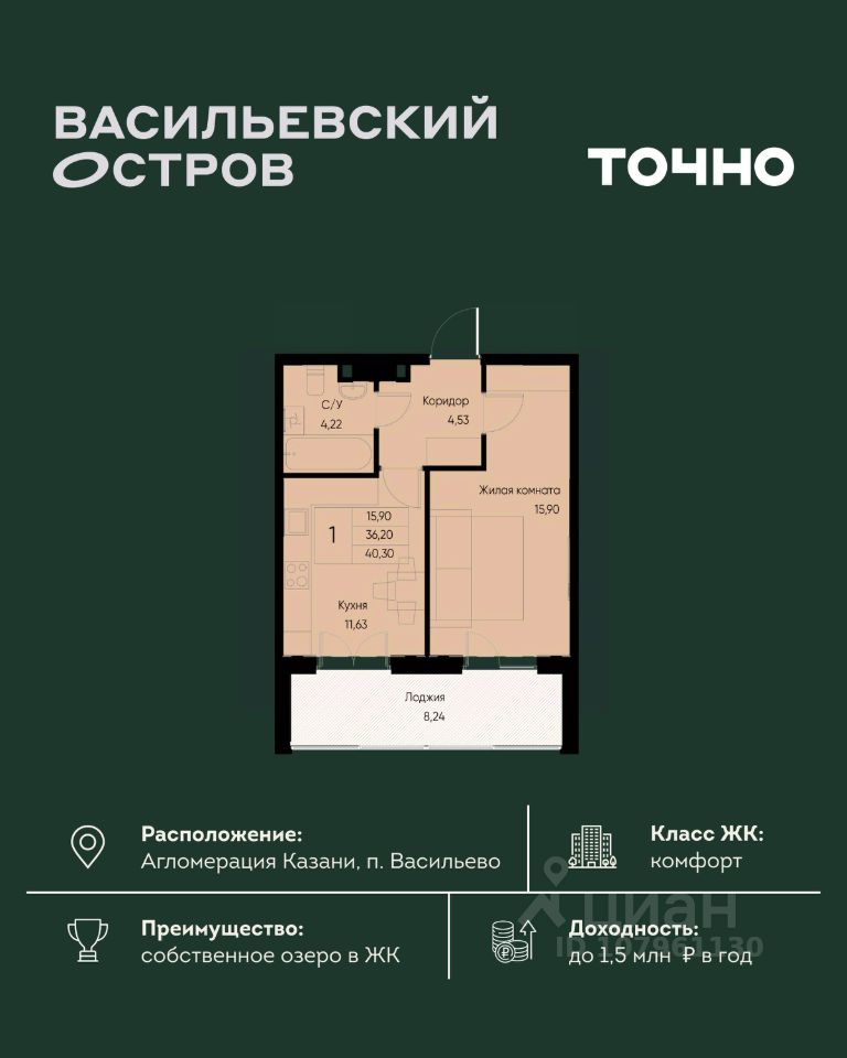 ЖК "Васильевский остров" — масштабный проект ТОЧНО в Казанской агломерации. Просторная территория 88 Га спроектирована для комфортной жизни: озеро с набережной и пляжем, каток, зелёные маршруты. В проекте комплекса — школа на 1 224 места, 2 детских сада на 680 мест, детская и взрослая поликлиники, фитнес-центр с бассейном, термальный комплекс, фермерский рынок, магазины, кафе и рестораны.