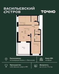 ЖК "Васильевский остров" — масштабный проект ТОЧНО в Казанской агломерации. Просторная территория 88 Га спроектирована для комфортной жизни: озеро с набережной и пляжем, каток, зелёные маршруты. В проекте комплекса — школа на 1 224 места, 2 детских сада на 680 мест, детская и взрослая поликлиники, фитнес-центр с бассейном, термальный комплекс, фермерский рынок, магазины, кафе и рестораны.