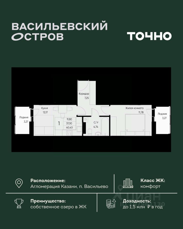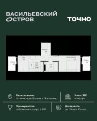 ЖК "Васильевский остров" — масштабный проект ТОЧНО в Казанской агломерации. Просторная территория 88 Га спроектирована для комфортной жизни: озеро с набережной и пляжем, каток, зелёные маршруты. В проекте комплекса — школа на 1 224 места, 2 детских сада на 680 мест, детская и взрослая поликлиники, фитнес-центр с бассейном, термальный комплекс, фермерский рынок, магазины, кафе и рестораны.