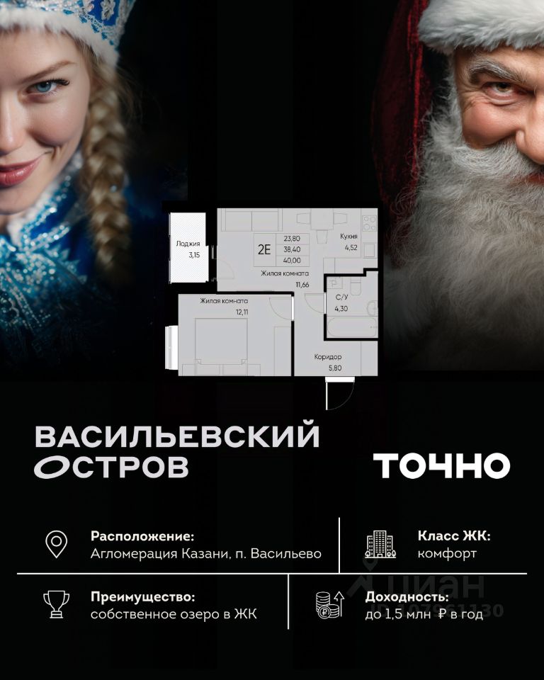 ЖК "Васильевский остров" — масштабный проект ТОЧНО в Казанской агломерации. Просторная территория 88 Га спроектирована для комфортной жизни: озеро с набережной и пляжем, каток, зелёные маршруты. В проекте комплекса — школа на 1 224 места, 2 детских сада на 680 мест, детская и взрослая поликлиники, фитнес-центр с бассейном, термальный комплекс, фермерский рынок, магазины, кафе и рестораны.