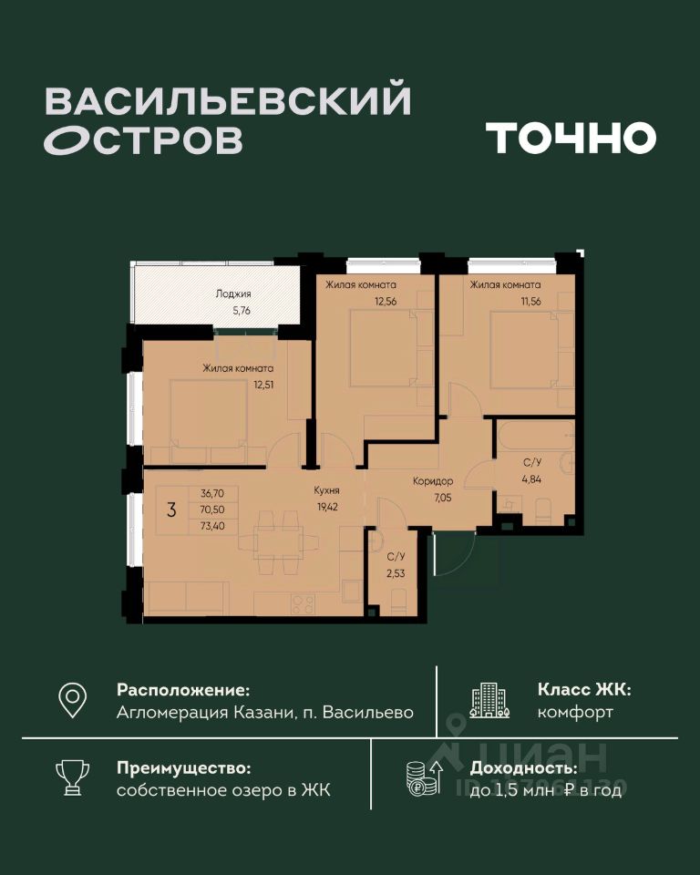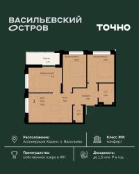 ЖК "Васильевский остров" — масштабный проект ТОЧНО в Казанской агломерации. Просторная территория 88 Га спроектирована для комфортной жизни: озеро с набережной и пляжем, каток, зелёные маршруты. В проекте комплекса — школа на 1 224 места, 2 детских сада на 680 мест, детская и взрослая поликлиники, фитнес-центр с бассейном, термальный комплекс, фермерский рынок, магазины, кафе и рестораны.