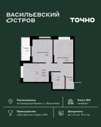 ЖК "Васильевский остров" — масштабный проект ТОЧНО в Казанской агломерации. Просторная территория 88 Га спроектирована для комфортной жизни: озеро с набережной и пляжем, каток, зелёные маршруты. В проекте комплекса — школа на 1 224 места, 2 детских сада на 680 мест, детская и взрослая поликлиники, фитнес-центр с бассейном, термальный комплекс, фермерский рынок, магазины, кафе и рестораны.