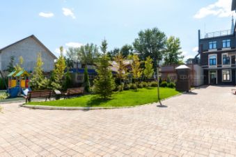 В доме есть подземный тёплый паркинг на 43 машино-места с доступом на лифте. В комплексе — закрытая территория, двор выложен плиткой, вокруг разбиты газоны и посажены деревья.
