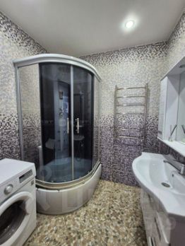 Потолки натяжные, на полу качественный ломинат и керамогранит, унитаз инсталляция.