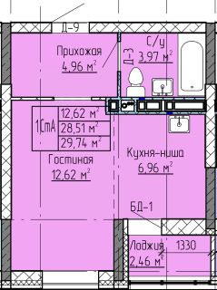 Продаётся студия в строящемся доме (Дом 12), срок сдачи: IV-кв. 2026, общей площадью 29.74 кв.м., на 17 этаже.