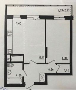 Арт. 102748891 Продаётся 1-к квартира (евродвушка) в ЖК "Манго", площадью 48,5 м².