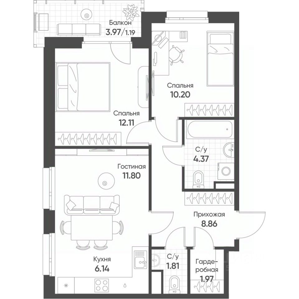 Продаётся 3-комнатная квартира в строящемся доме (Корпус 3), срок сдачи: IV-кв. 2025, общей площадью 58.5 кв.м., на 7 этаже. Новый жилой комплекс "Счастье" от застройщика "Группа Эталон" расположен по адресу город Казань, улица Гаврилова.