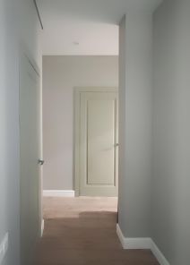 Зону прихожей и постирочной разделяет скрытая зеркальная двухсторонняя дверь.