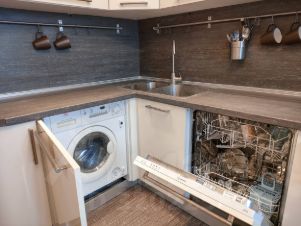 - Встроенная техника (посудомойка, стиралка, духовой шкаф, микроволновка).