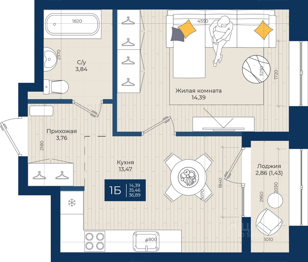 Жилой комплекс "NOVA 2", Квартира 81 общей площадью 36,89 м2 на 10 этаже.