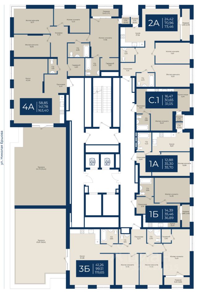 В проекте представлены квартиры с террасами, с которых открываются панорамные виды на центр города и другие эксклюзивные форматы: квартиры с патио, квартиры с увеличенными потолками до 4,8 м., пентхаусы с отдельным доступом в лифт на верхних этажах жилых башен. Во всех квартирах выполнена черновая отделка.