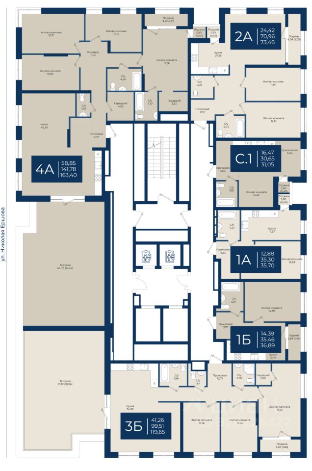Жилой комплекс "NOVA 2", Квартира 127 общей площадью 163,4 м2 на 14 этаже.