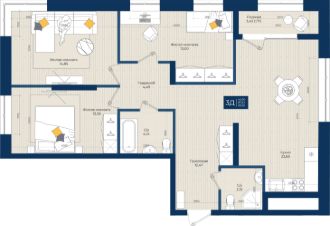 Жилой комплекс "NOVA 2", Квартира 151 общей площадью 89,55 м2 на 18 этаже.