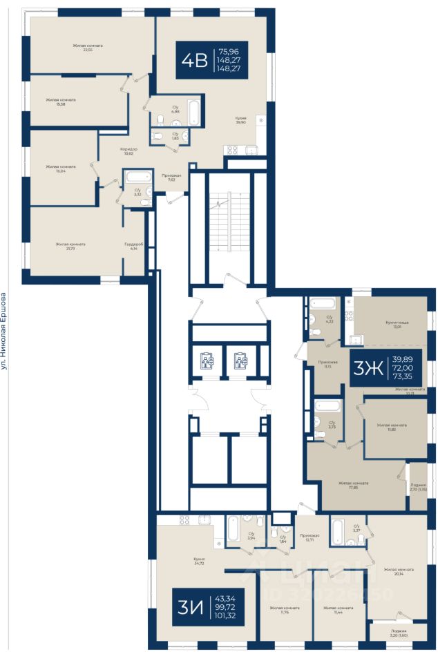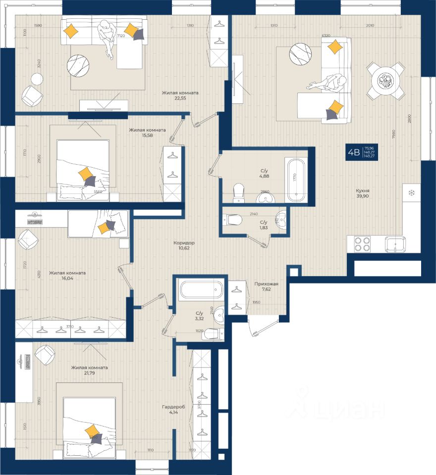 Жилой комплекс "NOVA 2", Квартира 154 общей площадью 148,27 м2 на 19 этаже.