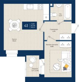 "ЖК на Чехова", Дом 1, Квартира 41 общей площадью 38,22 м2 на 4 этаже.