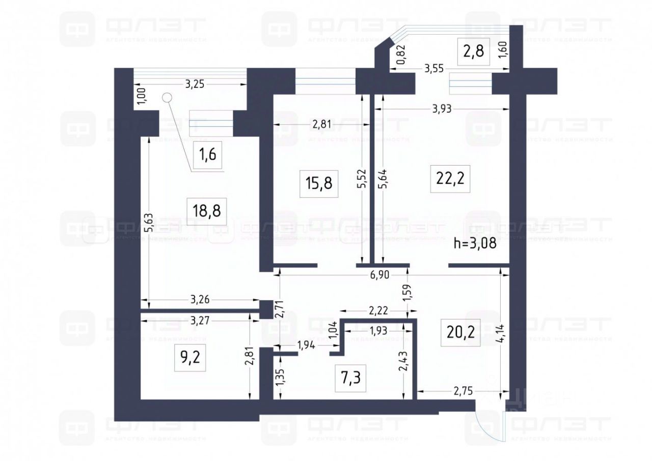 - две отдельные лоджии с выходом из спальни и зала