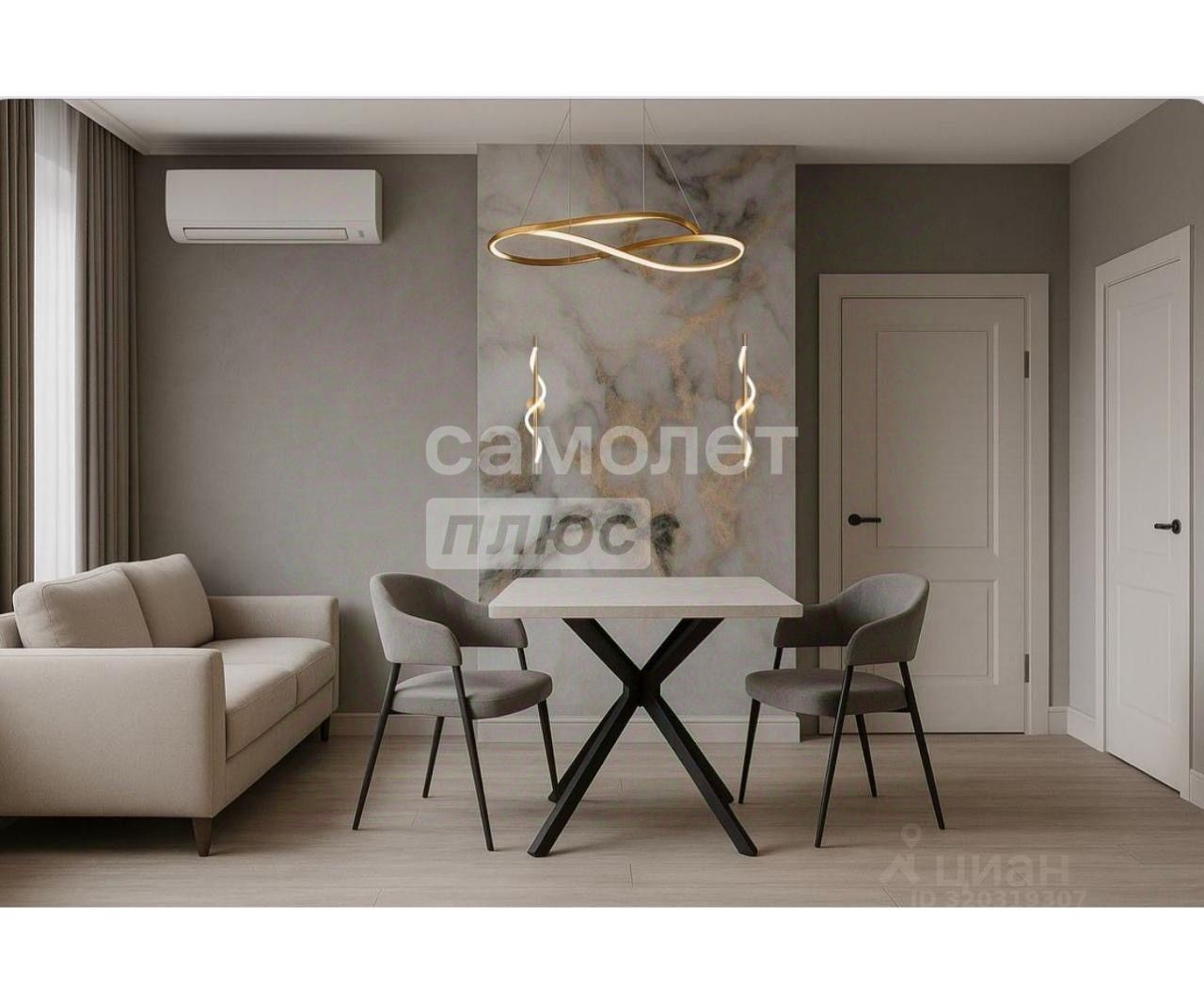 Предчистовая отделка от застройщика: выровненные стены и потолки, стяжка, радиаторы, разводка по электрике, установлены розетки и выключатели, корзины для кондиционеров. Имеется готовый дизайн-проект, который позволит довести квартиру до совершенства в кратчайшие сроки. На фото представлен вариант оформления кухни-гостиной.