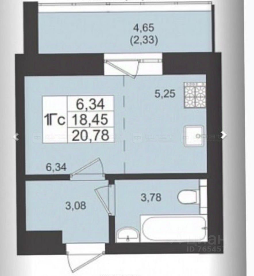 — просторная кухня-гостиная: общая площадь квартиры 20,78 кв.м., БЕЗ балкона 18,7 кв.м.