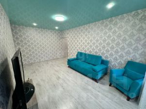 Квартира с ремонтом, пол в ламинате, новые светлые обои, из-за чего квартира стала светлой и уютной. Просторная гостиная 15 кв. и спальня 10 кв. Балкон застеклен, выходит во двор. На кухне есть холодильник, газовая плита. Санузел совмещенный, весь в кафеле, есть душевая кабина и стиральная машина.