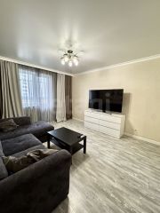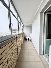 Квартира предлагает продуманную планировку с изолированными комнатами, что обеспечивает комфорт и приватность. Ключевым преимуществом является просторная лоджия на зал и спальню, выходящая на солнечную сторону и открывающую панорамный вид на город. Дополнительное удобство создает функциональная гардеробная зона, позволяющая оптимизировать пространство.