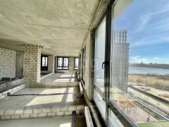 - кухня-гостиная 26.7 кв.м. и панорамным остеклением, с кухонной и гостиной зоной с видом на Казанку с выходом на лоджию;