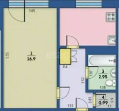 - Фактичeскaя площадь квартиры 41 кв.м.