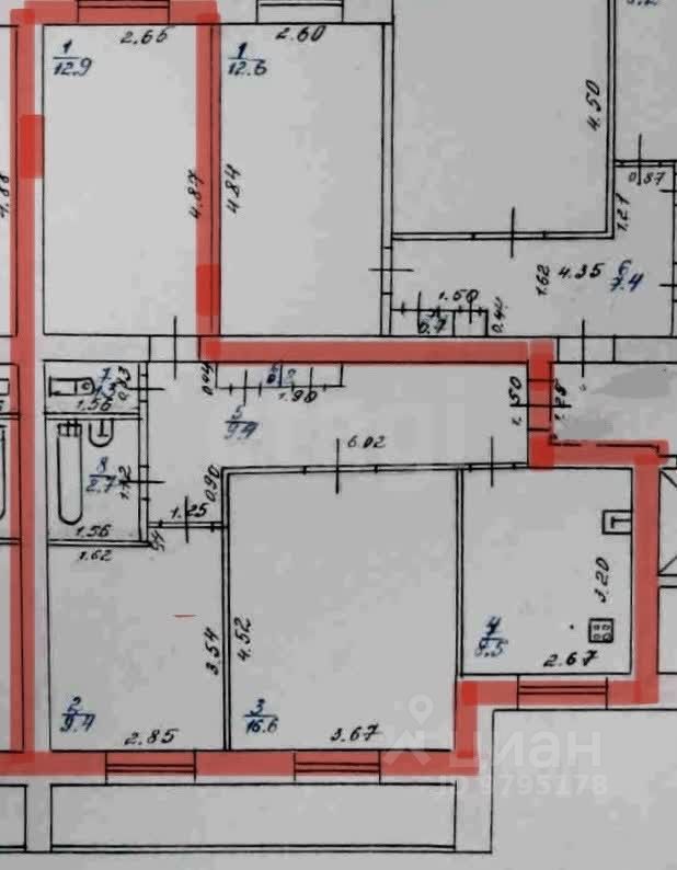 Изолированные комнаты площадью 16,6кв.м, 12,9кв.м., 9,4кв.м.,