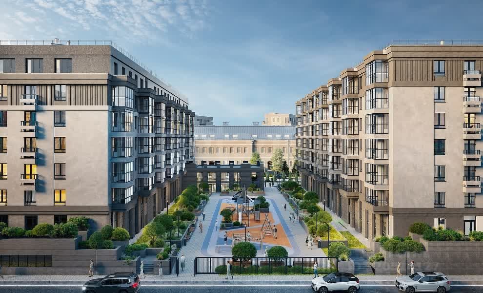 Продуманные ландшафтный дизайн и современные площадки для отдыха.