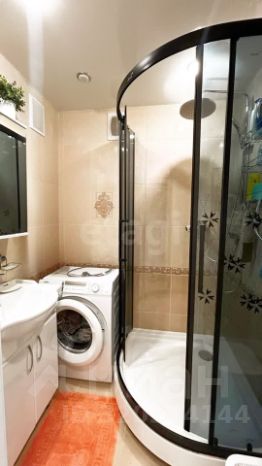 Ванная комната также оснащена всем необходимым. Вам не придется ломать голову над покупкой и установкой бытовой техники — здесь уже ждет свою хозяйку стиральная машина.