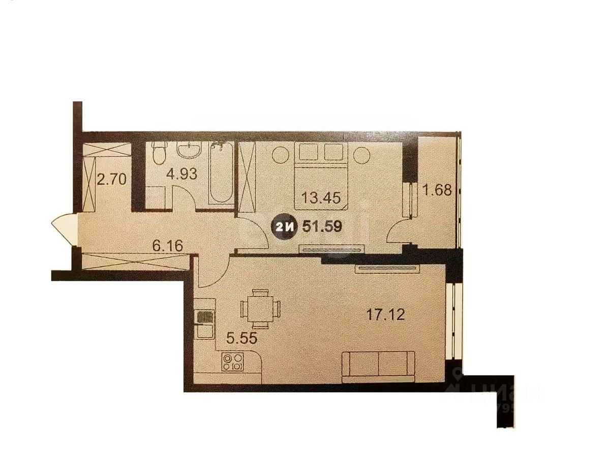 Общая площадь квартиры 50кв.м, этаж 3/23.