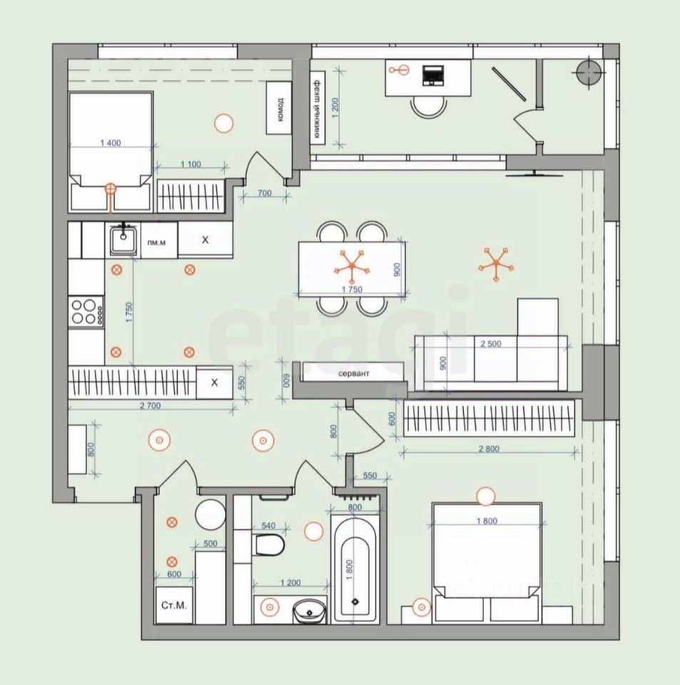 Высота потолков - 2,8м