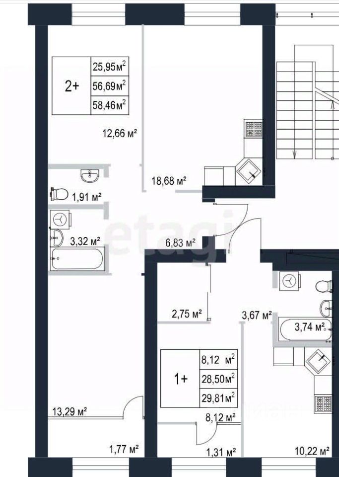 30,5 кв.м. кухня - гостиная 10,22 кв.м.