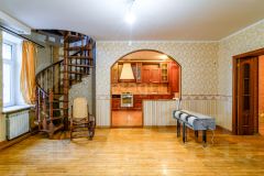 Планировка квартиры отличается продуманностью и функциональностью. На втором уровне расположена гостиная с уникальной отделкой: здесь находится действующий камин из натурального камня и элементы интерьера из цельного бревенчатого сруба, создающие атмосферу уюта и премиальности. В распоряжении собственника два санузла, практичная кладовая в квартире, а также дополнительная общая кладовая в подъезде. Предусмотрена техническая возможность для установки персональной сауны, что является редким предложением для квартирного формата.