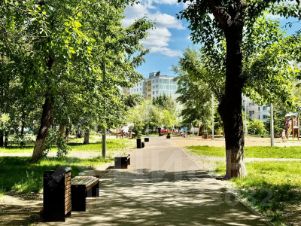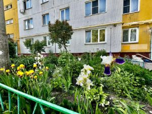Двор большой, спокойный, очень зеленый. На клумбах у подъездов растут много цветов и декоративных растений. Имеется футбольное поле и детская площадка. Произведен капитальный ремонт двора, много парковочных мест.