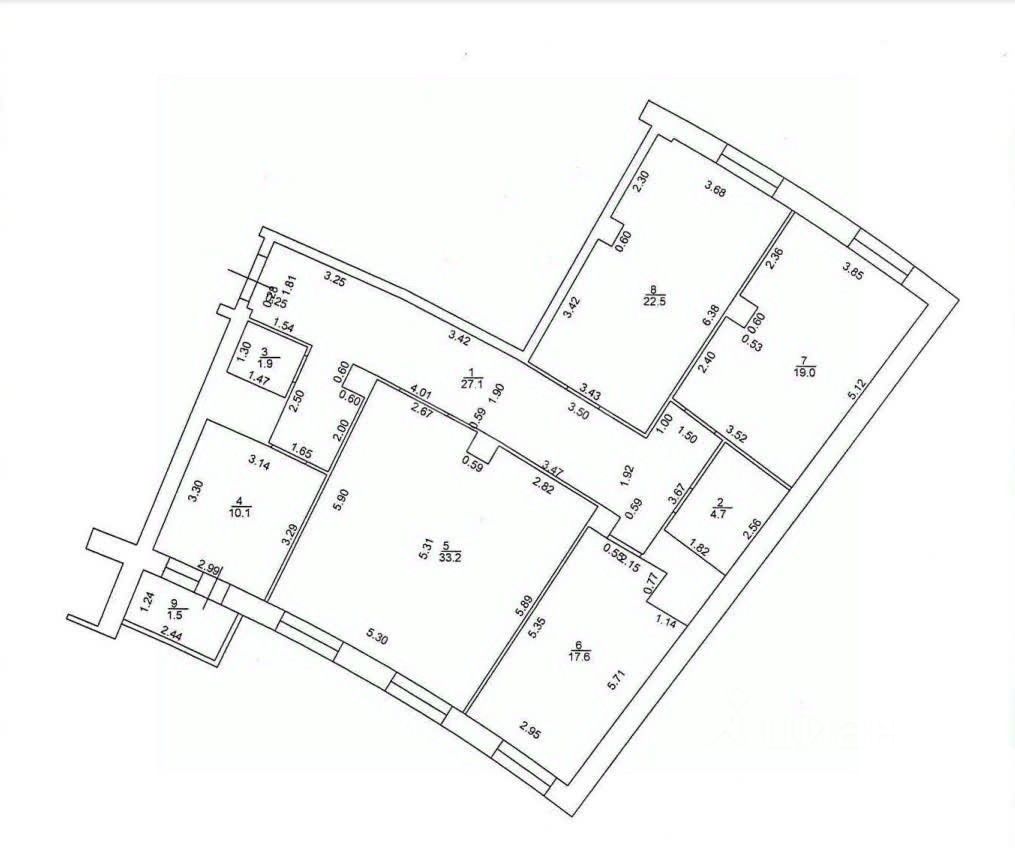 - 4 комнаты по 33 кв.м., 17 кв.м., 19 кв.м. и 22 кв.м.