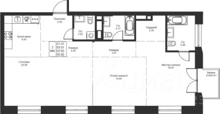 Предлагается квартира площадью 93.85 кв.м. со свободной планировкой, что позволяет легко организовать пространство под ваши потребности. Здесь без проблем можно спланировать комфортную трехкомнатную квартиру.