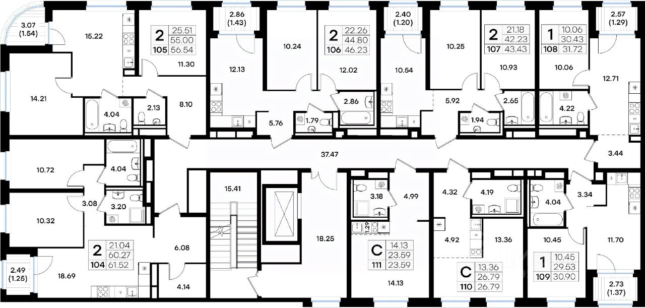 Продается 2-комн. квартира на 7-м этаже в строящемся проекте GloraX Экосити. Общая площадь лота составляет 61,52 кв. м, из которых 21,04 кв. м отведено под жилую и 18,69 кв. м под кухонную зону. Номер квартиры - 104