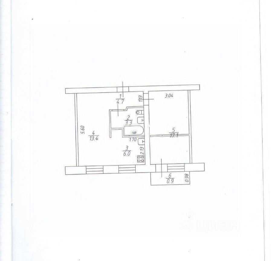 Квартира расположена на 2/5 этаже. Общая площадь 46 кв.м.
