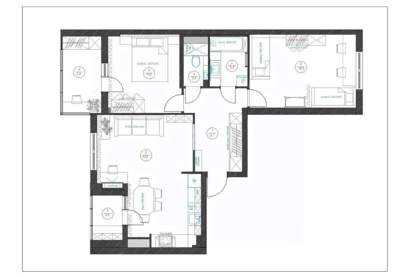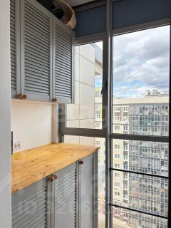 Общая площадь 67 кв.м включает изолированные спальни (12 и 16 кв.м), совмещенную кухню-гостиную 23 кв.м и два балкона с выходом из гостиной и основной спальни. Высота 12 этажа обеспечивает обзор городского ландшафта без соседних построек. Квартира с качественным дизайнерским ремонтом: однотонная отделка стен, керамогранит в санузлах, ламинат в жилых помещениях.